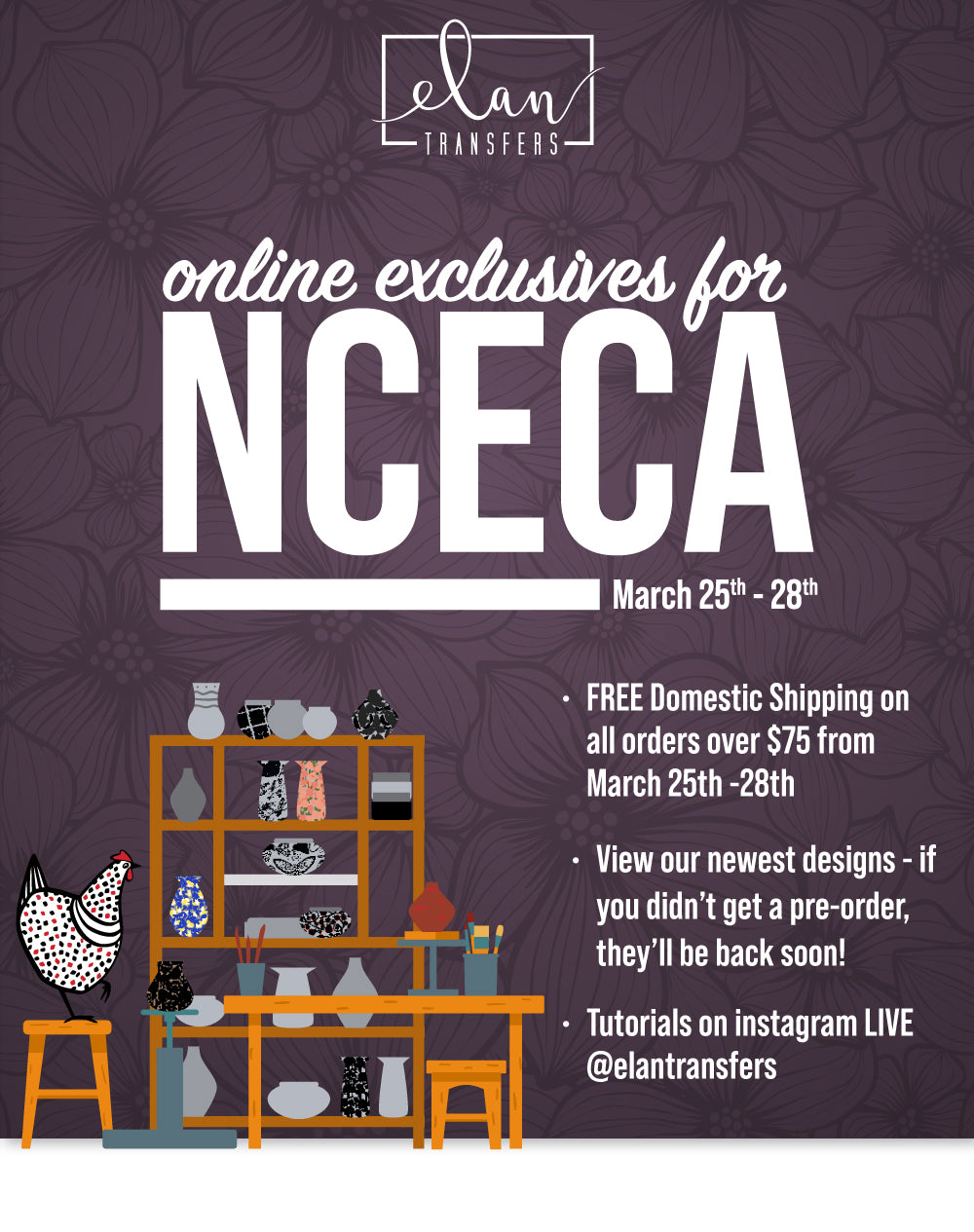 Elan Transfers offers a vibrant collection of high-quality, artist-designed underglaze decals created specifically for today’s ceramic artists. After years of using custom decal designs on her own work, artist Leigh Anne Thompson, saw that there was a need for a fresh approach to a timeless art of underglaze transfers.