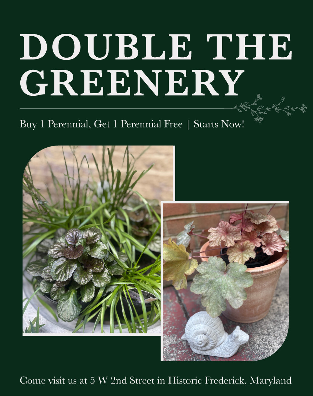 - Live plants including annuals, perennials, natives, water gardens and more.